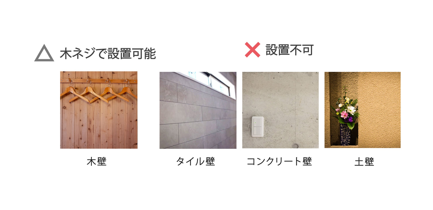 また、タイル壁、コンクリート壁、土壁には設置ができませんのでご了承ください。